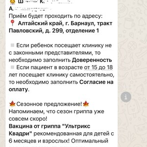Был записан ребенок за неделю к эндокринологу на 18.11.2025г., вчера - 17.11.205г. прислали уведомление с просьбой подтвердить визит, визит был подтвержден. Более никакой важной информации не было. И вот примерно в 19 часов вечера 17.11.2025г. раздался ДОЗВОН!, звонок сразу скинули, я подумал, что это спам. Каково же было удивление, когда сегодня утром придя на прием, сотрудник говорит: Вы в курсе, что цена выросла с 1950 до 2500 рублей?! Да ладно?! С какого?! Почему не предупредили хотя бы за день, когда прислали подтверждение?? Вечером сделали ДОЗВОН! в 19 часов вечера! У вас цена поднялась вечером??! Сомневаюсь. Поднимите записи разговоров, переписку, вы убедитесь, что должным образом мне не сообщили об изменении цены, хотя возможность у вас была.